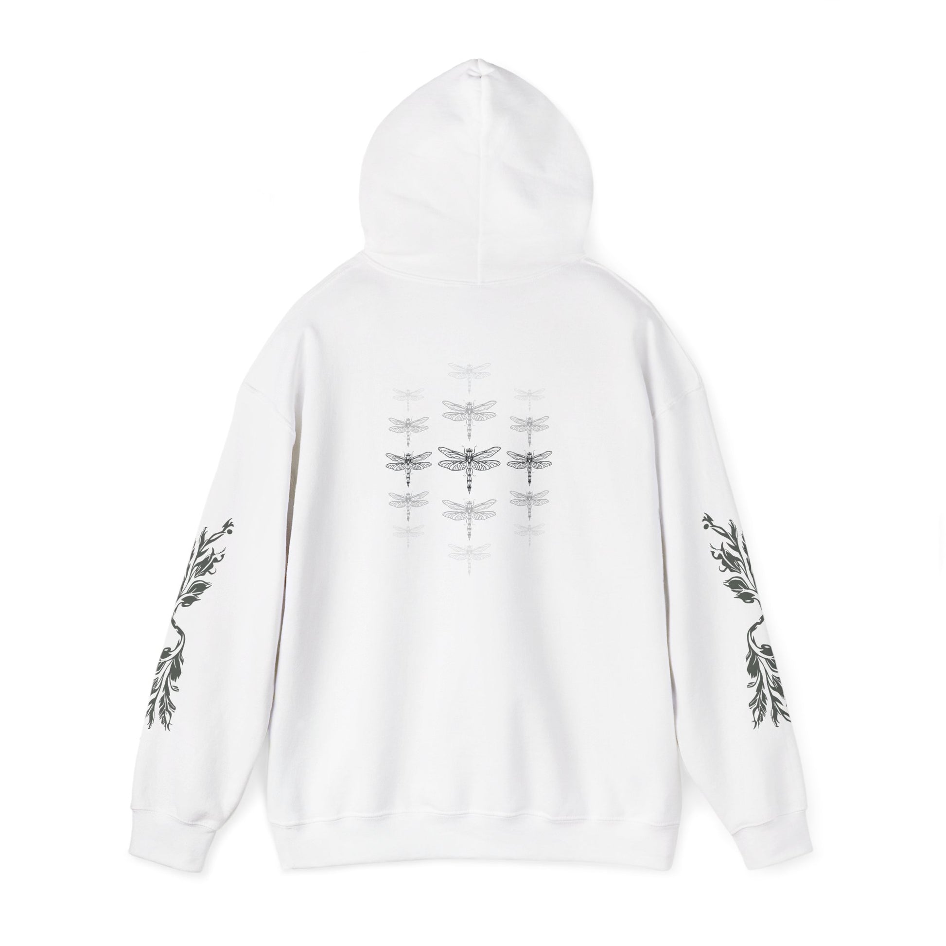 The Dauntless Hoodie draws its strength from the dragonfly—a symbol of courage, transformation, and unwavering resolve. On the front, a single dragonfly leads with quiet determination, while a gathering of dragonflies on the back represents the power of unity and perseverance.
