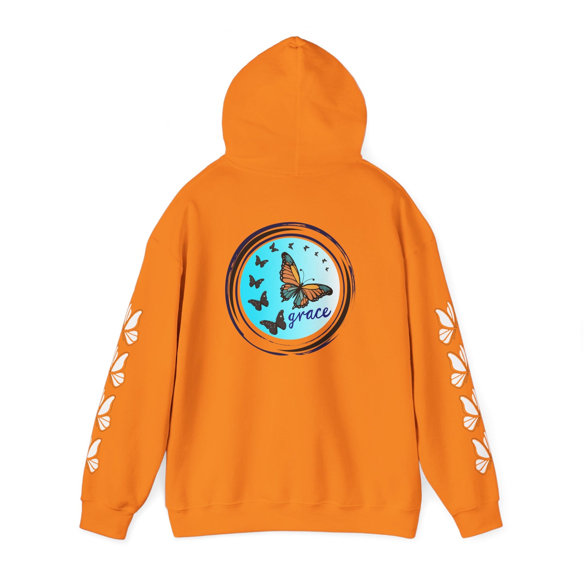 The Grace Hoodie is a tribute to the quiet power of change. Adorned with butterflies on the front, back, and sleeves, it captures the spirit of becoming—how growth often begins in stillness, and how beauty can rise from struggle. Each winged detail symbolizes renewal, vulnerability, and the courage it takes to emerge whole.