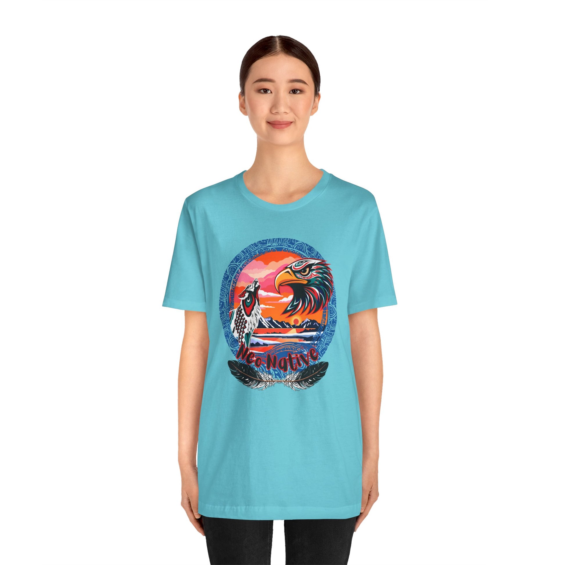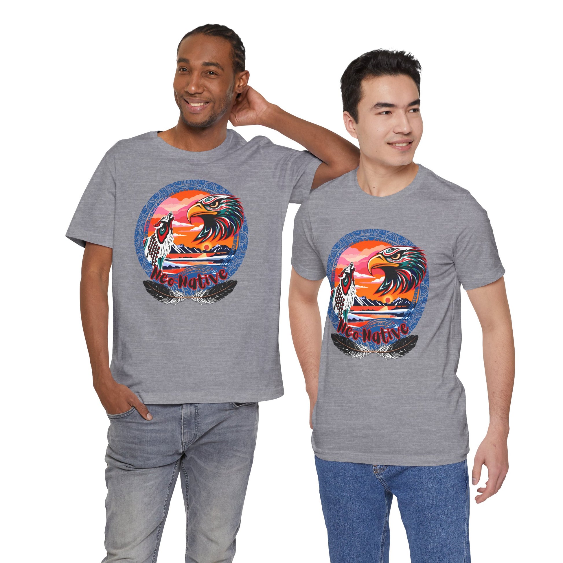 The Neo Native Brand Logo T-Shirt represents the heart of the movement—where ancient ways meet bold expression. At the center is the Neo Native emblem: a symbol forged from heritage, spirit, and strength. Every curve and color speaks to generations of survival, adaptation, and beauty born from the land.