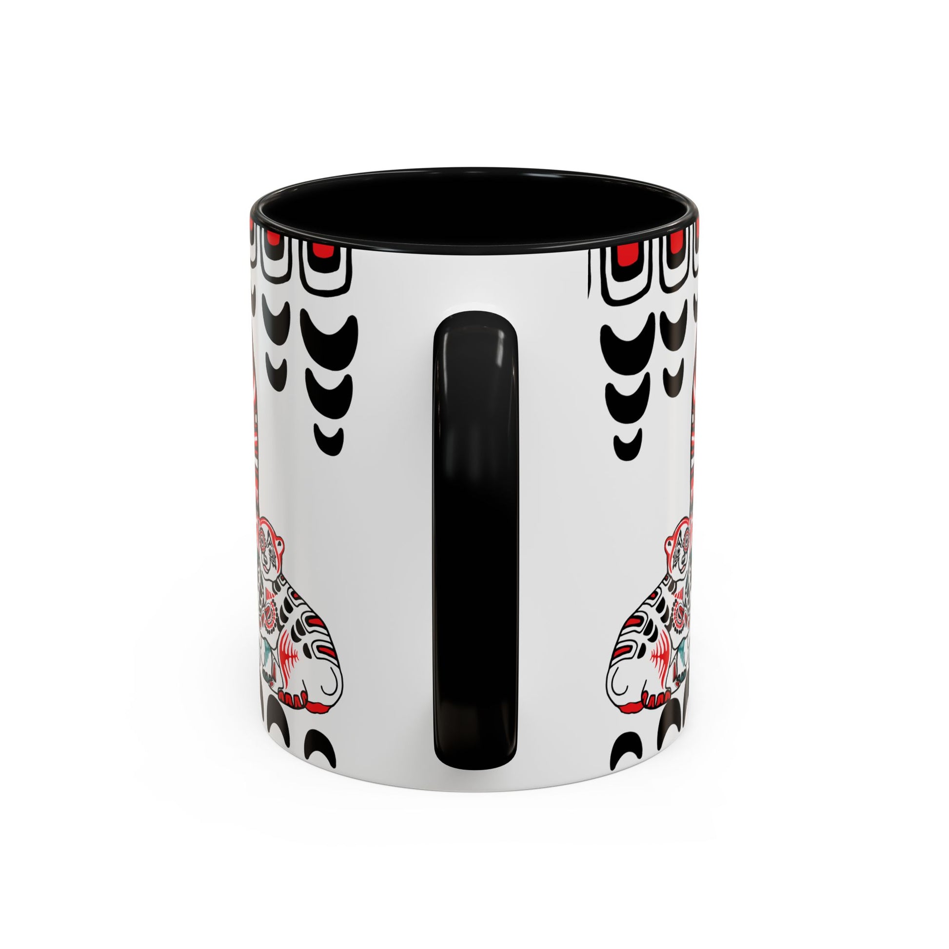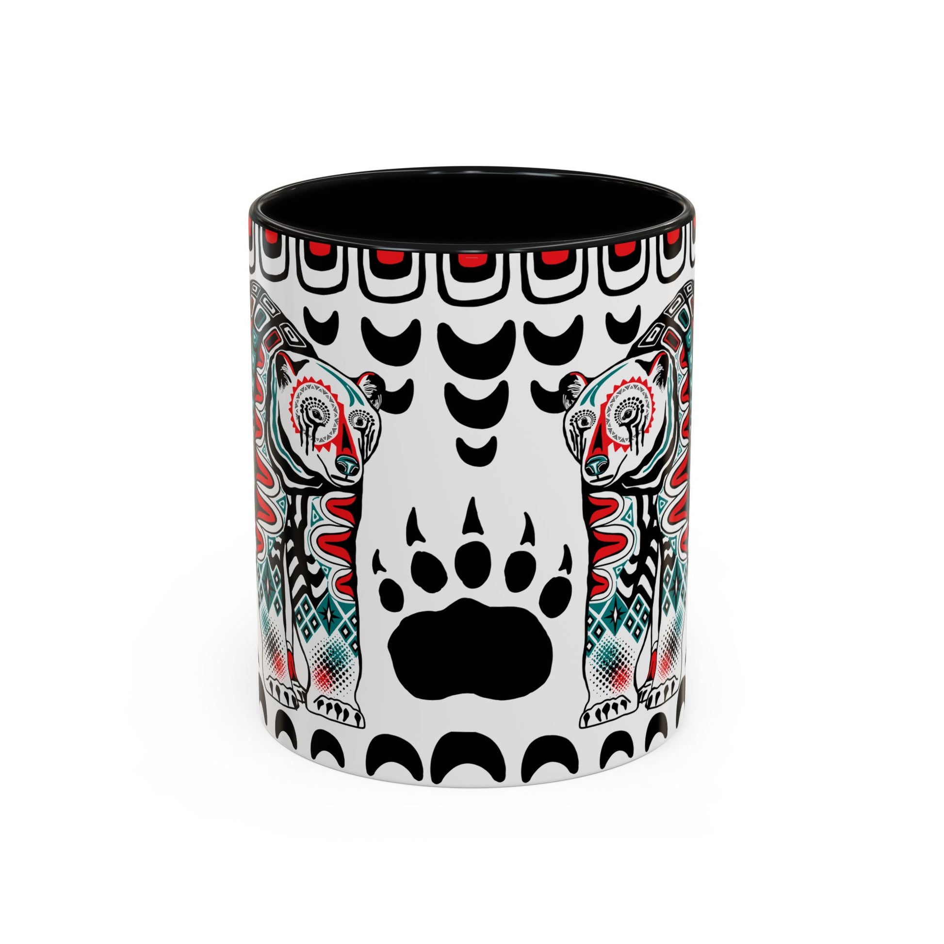 Honor the majesty and resilience of the Arctic with the Polar Bear Mug! It features an Alaska Native-inspired design, with a powerful polar bear and her two cubs, intricately adorned with tribal patterns that symbolize protection, heritage, and the enduring spirit of the wild. The white fur of the polar bears is set against bold, geometric tribal motifs that echo the connection between the land, the animals, and the people who have called this place home for centuries.