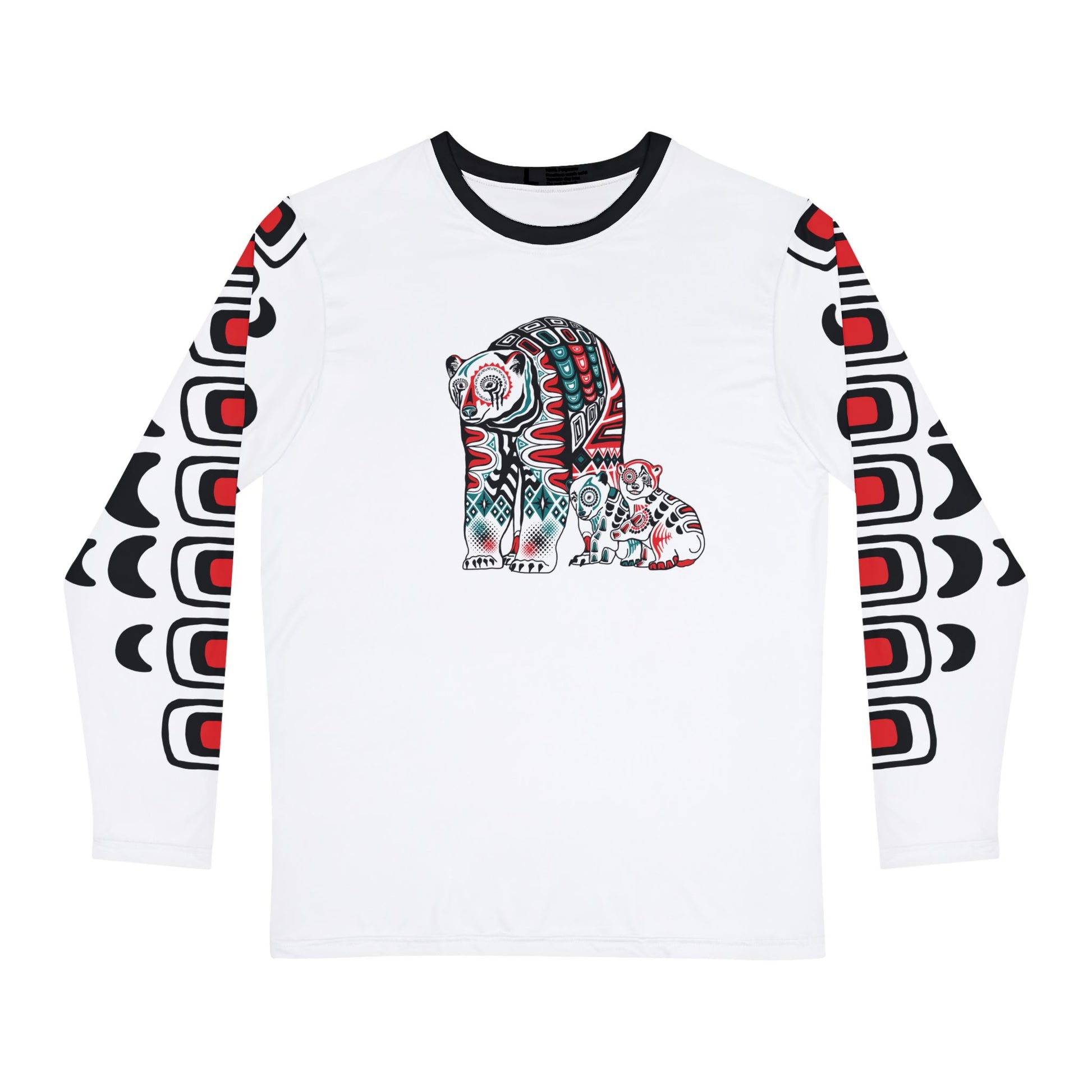 Polar bears are known for their ability to survive in the harshest environments; they are both solitary hunters and protective parents. The polar bear mother in this design symbolizes nurturing resilience, while her cubs reflect innocence, learning, and the bond between generations. Just like the polar bear’s ability to adapt and thrive in the frozen wilderness, this shirt serves as a reminder to embrace both the challenges and beauty of life with unwavering courage. Wearing this long-sleeve is more than just an homage to one of the world's most majestic creatures—it's a tribute to the deep connection between family, heritage, and the unyielding strength that comes from both nature and spirit.