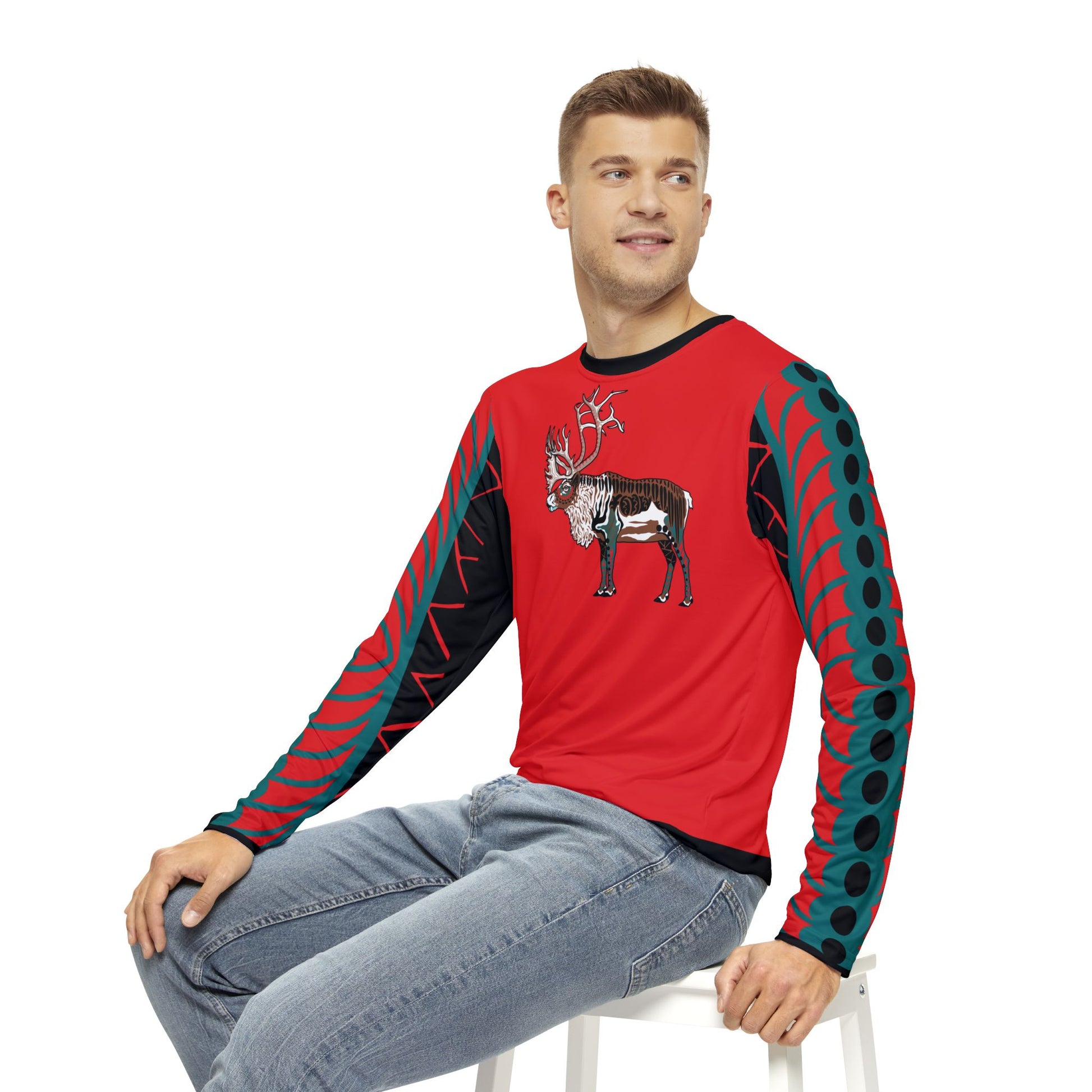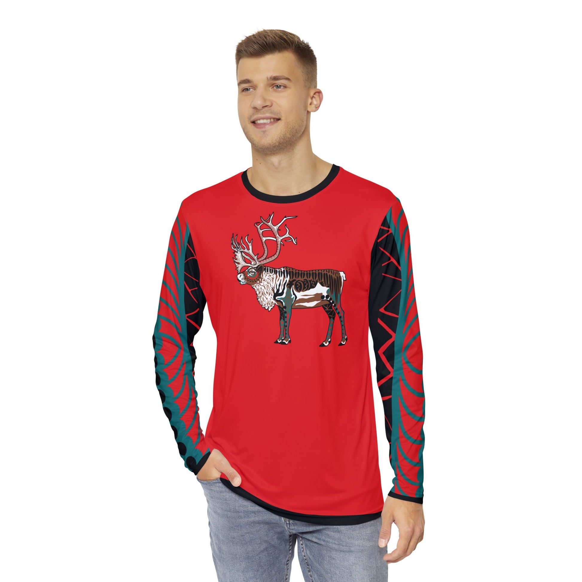 Celebrate the spirit of the Alaskan wilderness with the Caribou Long-Sleeve. This vibrant red long-sleeve t-shirt features a stunning Native art-inspired design of a caribou, paired with intricate matching patterns along the sleeves. The bold red color and unique artwork create a striking visual that honors the strength and resilience of this iconic animal. Perfect for cooler weather, this shirt offers both comfort and style while showcasing your connection to Alaska’s natural beauty and indigenous culture.